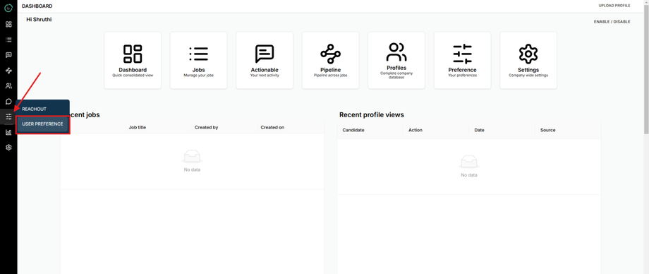 Step 1: Go to "Your Preferences" in your Recruitment Assist Dashboard.