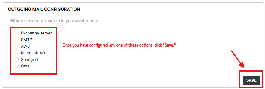 Step 2: On the "Your Preferences" user settings page, locate the "Outgoing Mail Configuration" section. Enter your mailbox credentials based on the selected option: