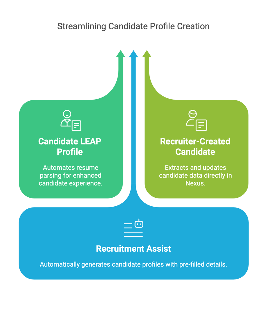 Automatically creates a candidate profile in Nexus, pre-filling all relevant details for seamless processing.