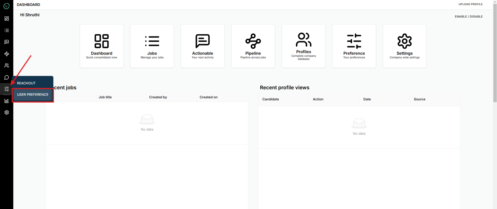 Step 1: Go to "User Preferences" in your Recruitment Assist Dashboard.